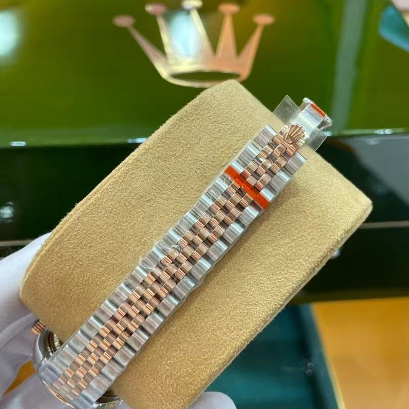 The bracelet is another highlight of this 1:1 clone. The five-link design alternates Oystersteel and Everose gold for striking visual depth and silky smoothness. Links are precisely polished, bending naturally to the wrist curve. The clasp opens and closes with effortless security, micro-adjustment refined to the millimeter. Long wear or quick removal — every moment feels supremely comfortable. Top-tier workmanship ensures the watch appears flawless from side, back, or any angle, as if destined for your wrist from the beginning.