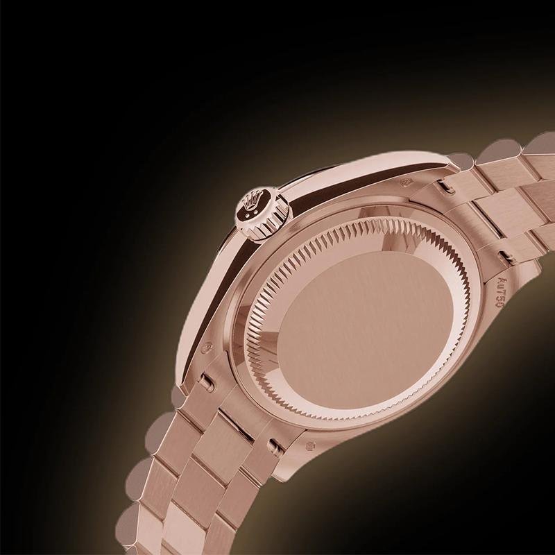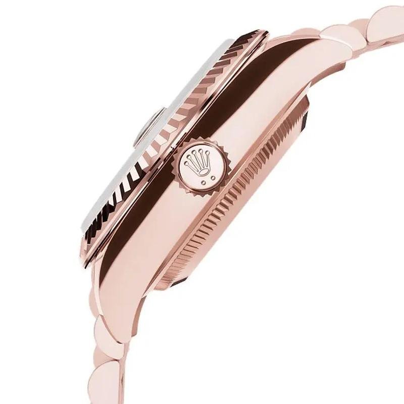 The rose-colored diamond dial serves as the visual highlight of this watch. Its soft tone shifts subtly under light, complemented by precisely set diamond markers that enhance luxury without excess. The sapphire crystal provides outstanding clarity and scratch resistance, matching the original in both thickness and curvature.