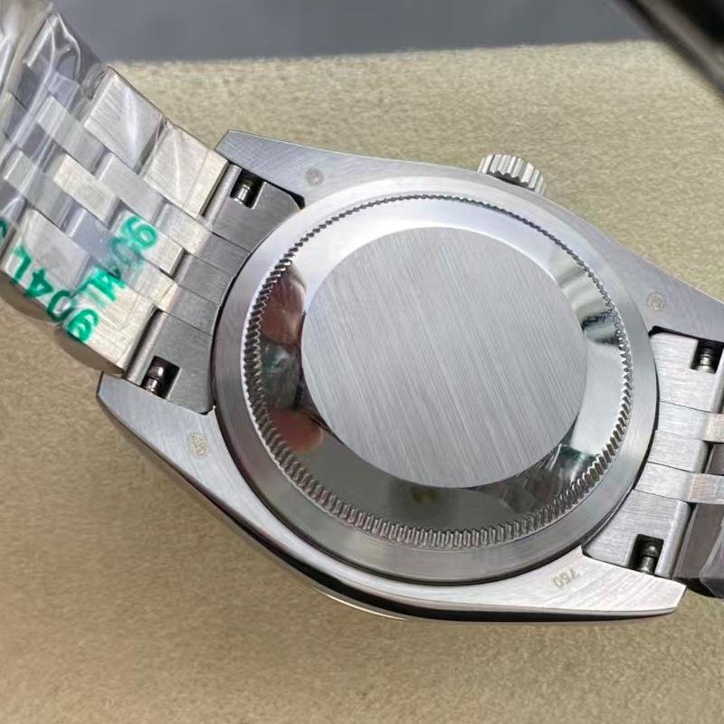 The white gold diamond-set bezel is meticulously produced based on original specifications, with each diamond selected for consistent brilliance and natural sparkle. The silver dial is clean and sophisticated, displaying excellent depth and clarity under different lighting conditions. Indexes, hands, and typography are precisely aligned with genuine Rolex standards.