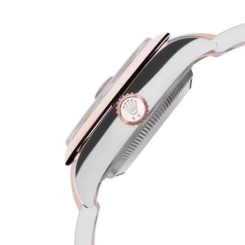 The stainless steel case combined with Everose gold styling is finished through advanced polishing and brushing techniques, closely replicating the look and feel of the genuine model. With a 28mm diameter, the watch sits gracefully on the wrist, offering elegance without excess.