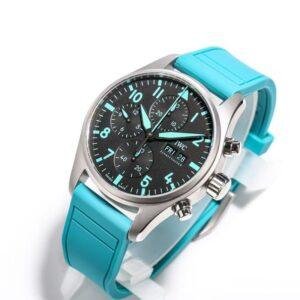 This top-of-the-line 1:1 clone IWC Pilot’s Watch Chronograph 41 Edition “Mercedes-AMG PETRONAS Formula One™ Team” (model IW388108) As the official special edition of the “Mercedes-AMG Petronas F1 Team”, it perfectly blends racing genes with aviation aesthetics with a 41mm diameter. The dial continues the classic cockpit instrument layout. The signature Petronas green details are dotted on the black background, echoing the team’s colors and highlighting the sense of passion and speed.
