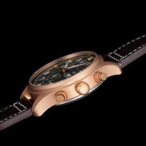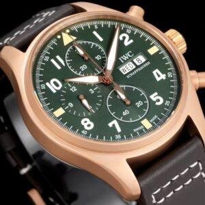 This top-of-the-line 1:1 clone IWCPilot’s Watch Chronograph 41 (model IW387902) showcases a retro adventure style with an exquisite 41mm case diameter. The bronze-colored case is uniquely charming and can form a unique patina over time through oxidation. Paired with a deep green dial and a retro brown strap, the overall look exudes a strong sense of nostalgia and personalized texture.