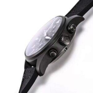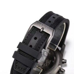 This top-of-the-line 1:1 clone IWCPilot’s Watch Chronograph 41 TOP GUN Ceratanium (model IW388106) interprets the ultimate stealth fighter aesthetics in a professional 41mm size. Both the case and the strap are crafted from the brand’s signature Ceratanium ceramic titanium metal and treated with a sandblasting matte finish, presenting a unique all-black ceramic titanium texture. It combines lightness, sturdiness and anti-allergy properties, fully demonstrating a low-key and professional military style.
