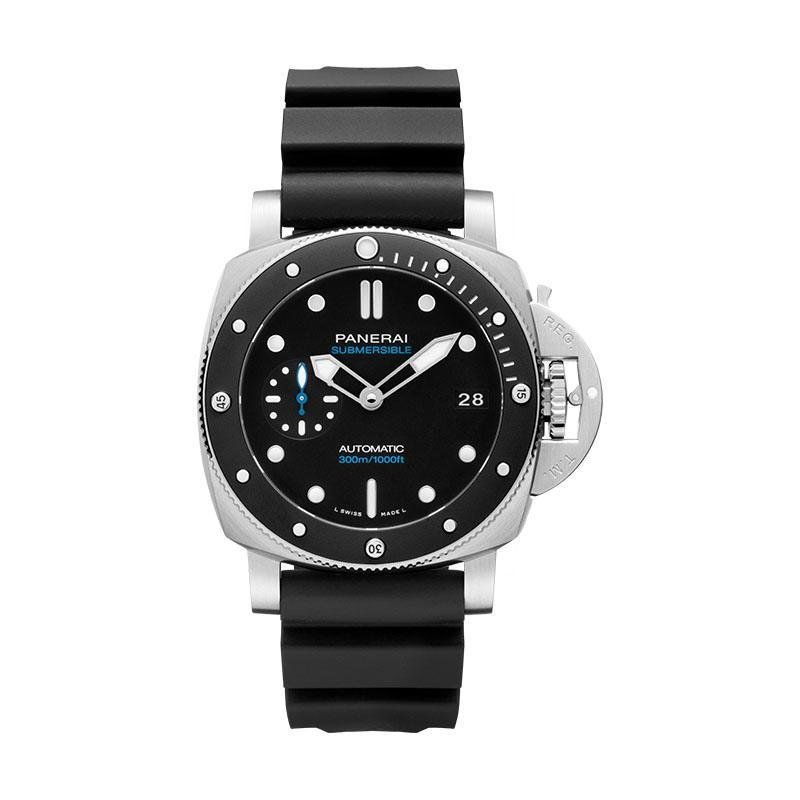 This top-of-the-line 1:1 clone Panerai Submersible diving watch (model PAM02683) interprets the classic design and reliable performance of professional diving watches with a 42mm exquisite case diameter. The stainless steel case is precisely forged and finely polished, paired with a deep black dial, continuing the brand’s signature tough style and excellent underwater readability.