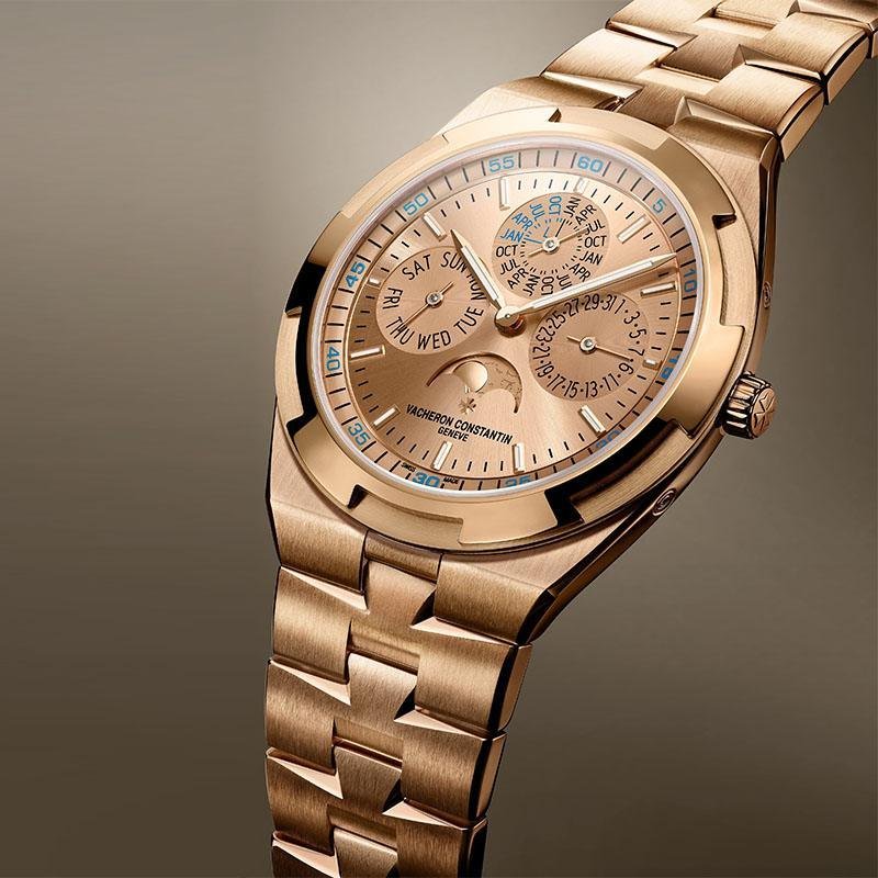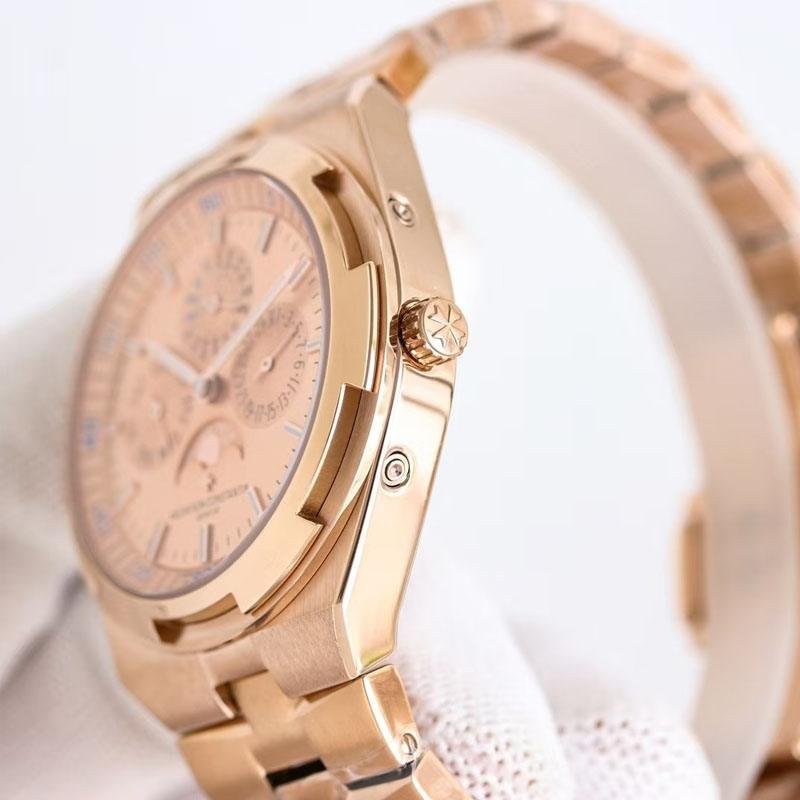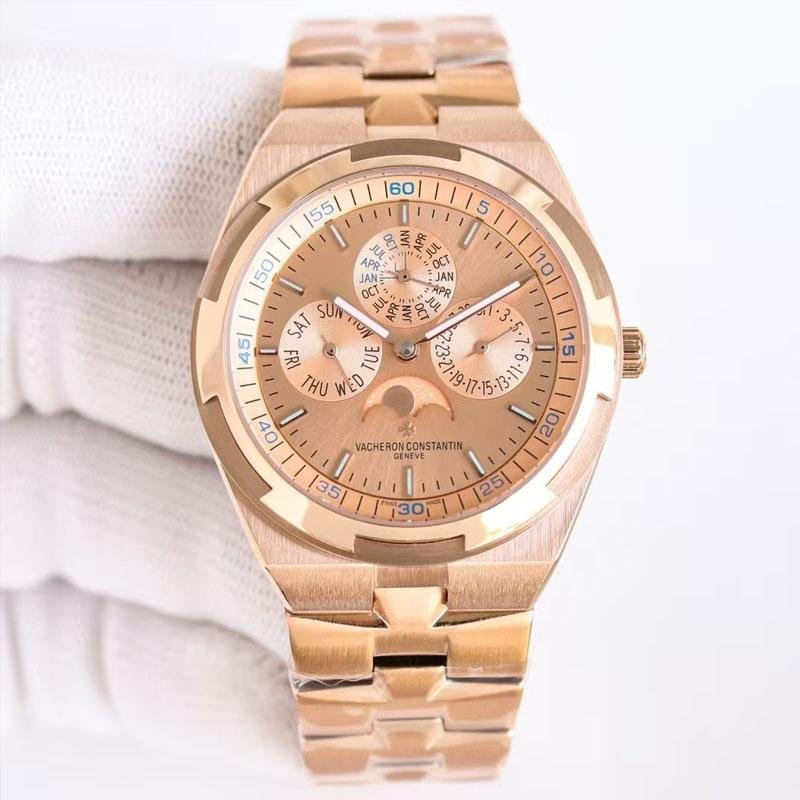 【Top Clone Vacheron Constantin 4300V/220R-H144】A 1:1 replica of the classic Overseas Perpetual Calendar Ultra-Thin Pink Gold, it’s a favorite among Vacheron Constantin collectors! The 41.5mm diameter fits most wrist sizes, paired with a transparent and wear-resistant sapphire crystal, and the simple and elegant layout shows luxurious texture, adding extraordinary style to the wearer.