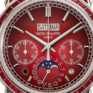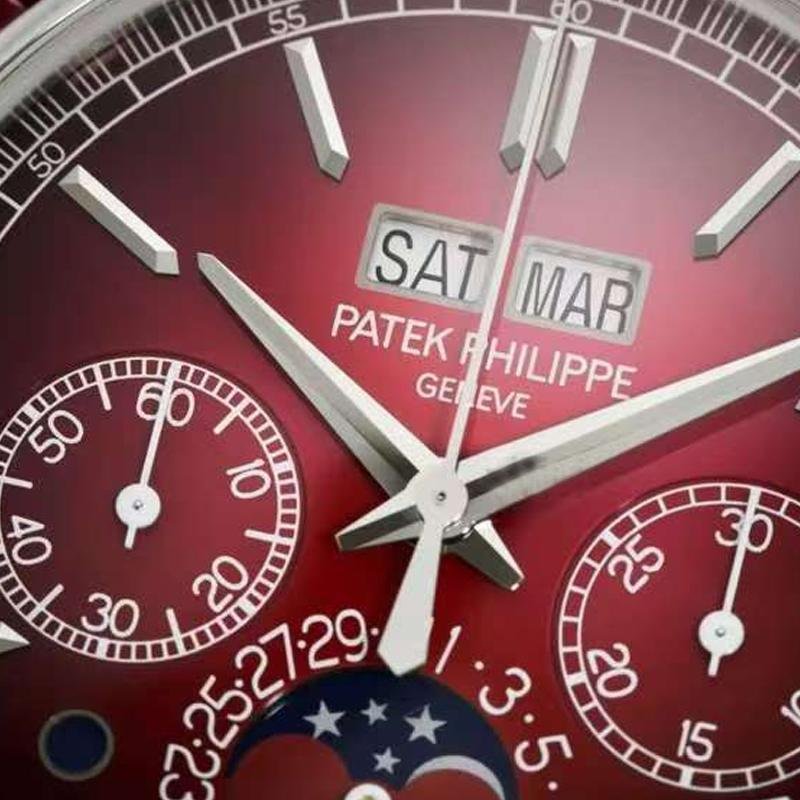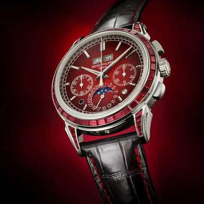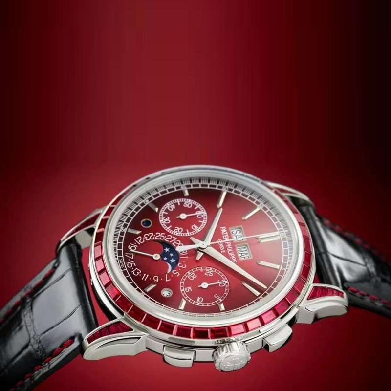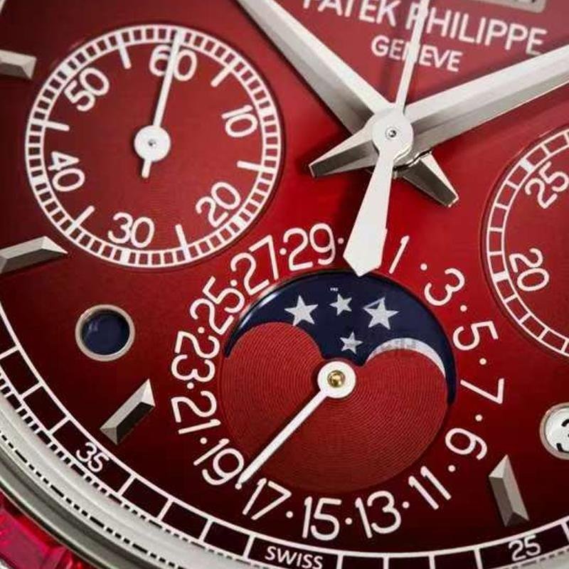 The red dial has a unique and high-end texture. The 41mm stainless steel case is equipped with an automatic mechanical movement and integrates chronograph, perpetual calendar and moon phase functions