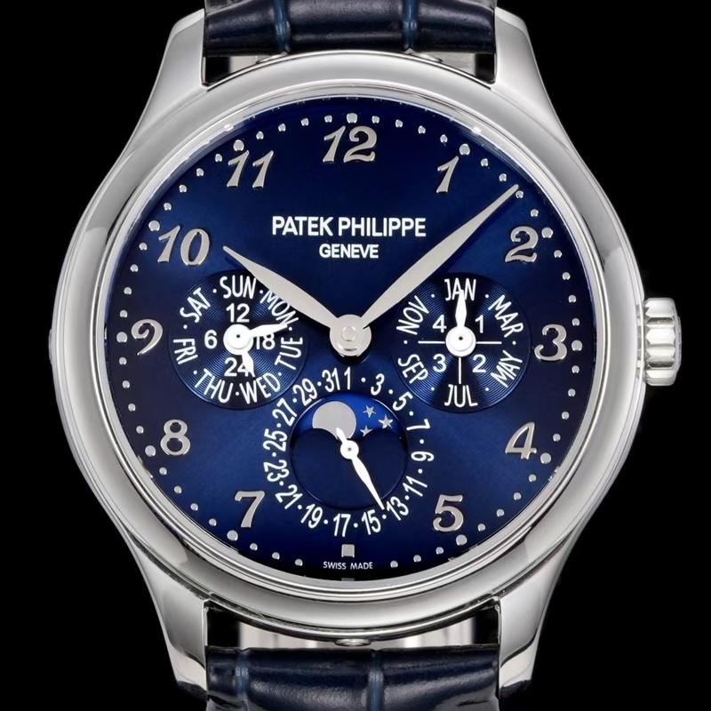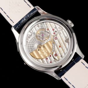 Discover this top-tier clone Patek Philippe replica Grand Complications Platinum 5327G-001 watch, faithfully recreating Patek Philippe’s Grand Complications perpetual calendar masterpiece. 39mm steel case finely polished, blue sunburst dial exuding royal blue charm, applied gold markers and leaf hands in sharp contrast. Sapphire crystal mirror durable and clear, leather strap soft and durable for comfortable wear.
