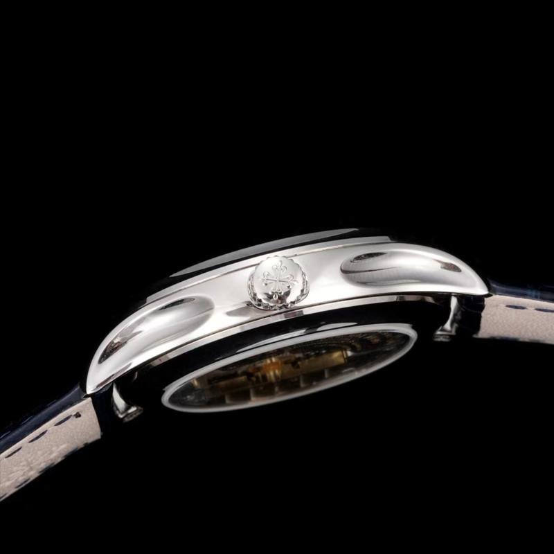 Powered by precise imitation automatic winding movement with reliable 48-hour power reserve, perfectly achieving super complications: pointer date at 3 o’clock, precise 24-hour true moon phase at 6 o’clock, day subdials at 9 o’clock, plus leap year and month indicators—all perpetual calendar functions auto-adjust dates with minimal manual intervention, smooth and stable operation. Dial layout classically balanced, details exquisitely handled—from hand shapes to subdials scales, 1:1 perfect replication of original Patek Philippe handcraft.