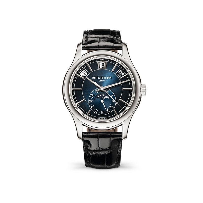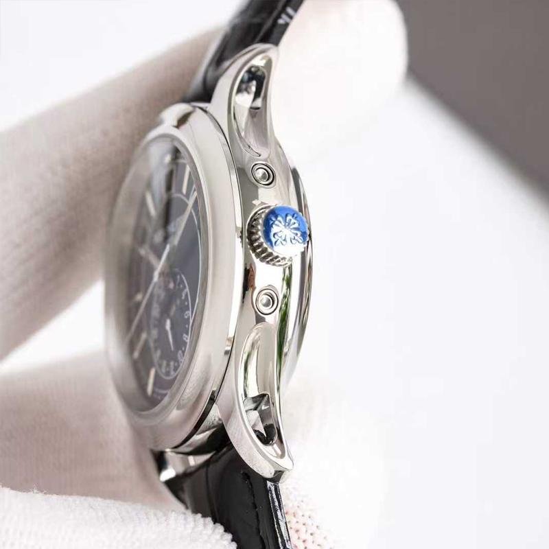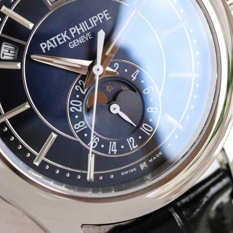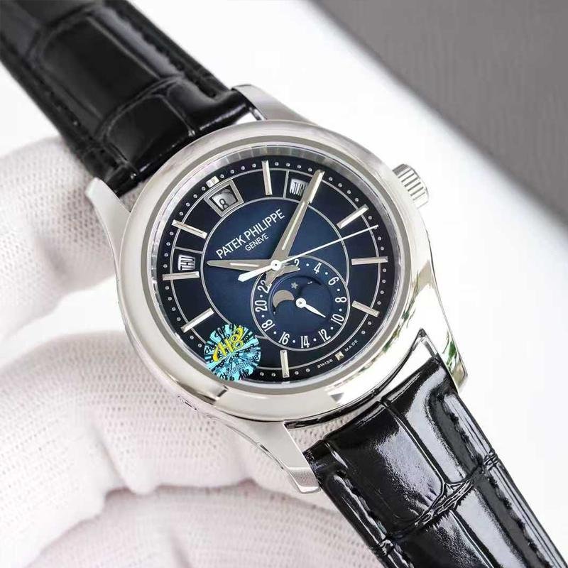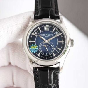Top-quality clone Patek Philippe 1:1 replica Complications White Gold 52055G -013 complex function chronograph wristwatch, white case diameter 40mm, blue dial, equipped with Cal.324S automatic movement, complex movement and calendar, day of the week Month, moon phase, 24-hour multiple functions, sapphire glass mirror, cowhide strap, exquisite workmanship, every detail perfectly replicated, global fast delivery.