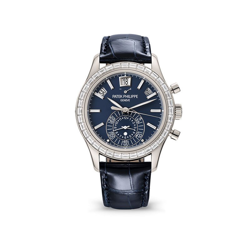 1:1 Replica Clone Patek Philippe Complications Platinum 5961P-001 Platinum Monopusher Flyback Chronograph Annual Calendar Watch Blue Diamond Dial