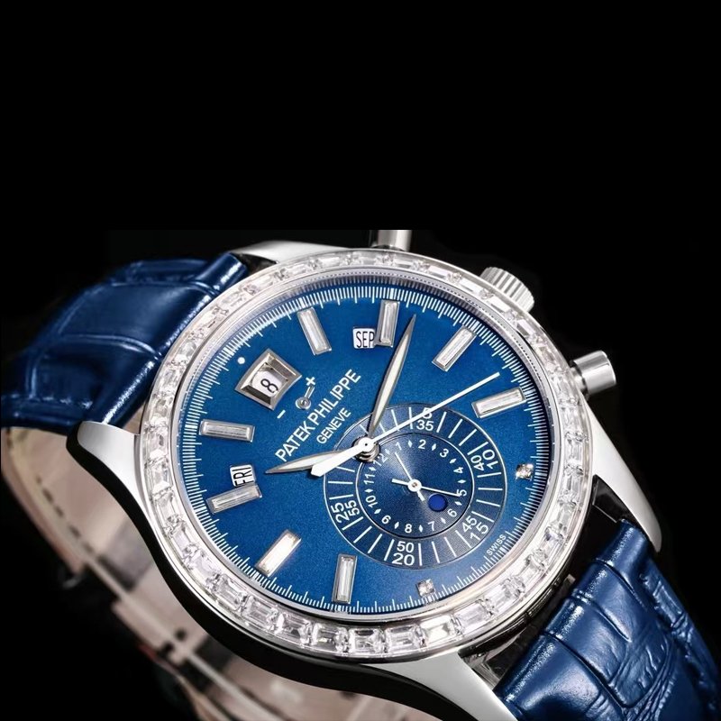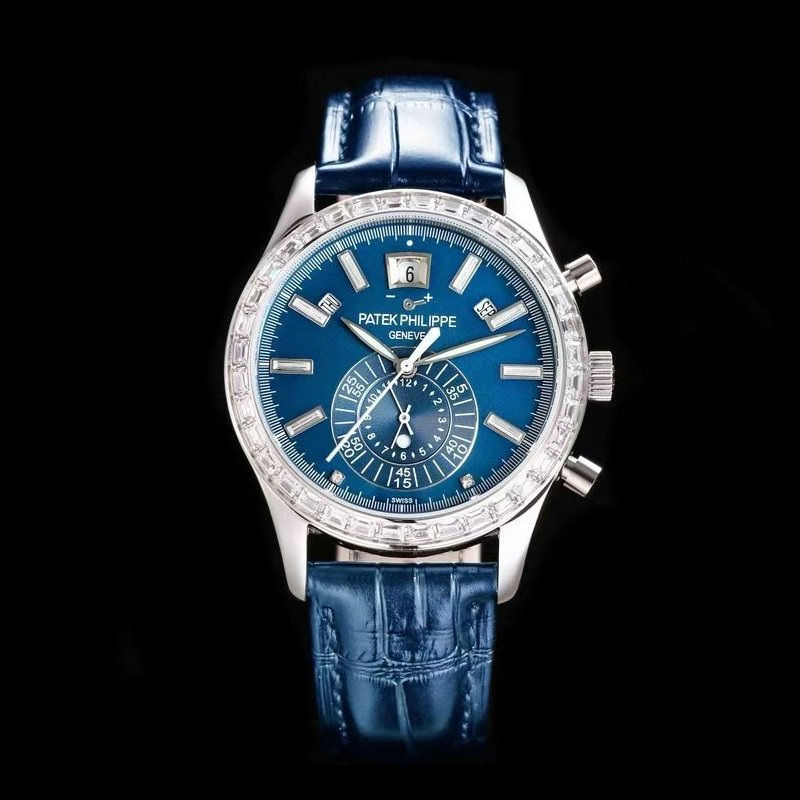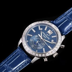 Sapphire glass crystal wear-resistant and transparent, cowhide leather strap soft and upscale for supreme wearing honor. This clone Patek Philippe watch rivals genuine standards from platinum texture to diamond setting craftsmanship, delivering unparalleled platinum luxury experience and mechanical shock. Blue diamond dial platinum version ultimate rarity, perfectly suiting top business and collection needs. Hall-level masterpiece in clone Patek Philippe Complications platinum series, high cost-performance regal alternative. Supports global fast delivery and discreet packaging—prestigiously own this monopusher flyback chronograph annual calendar platinum legend!