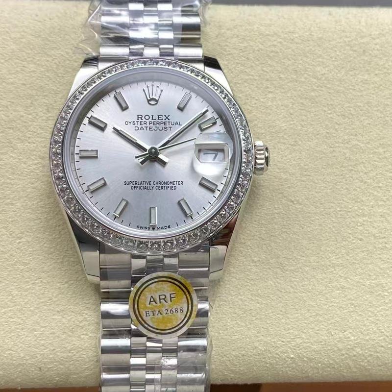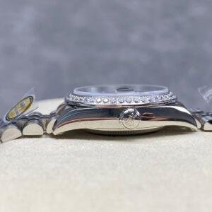 The watch features a premium Oystersteel case with a white gold diamond-set bezel, where each diamond is carefully aligned for a natural and luxurious sparkle. The silver dial delivers excellent legibility and depth under various lighting conditions, reflecting the timeless DNA of the Lady-Datejust collection.