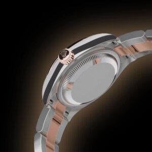 The stainless steel case combined with Everose gold styling is finished through advanced polishing and brushing techniques, closely replicating the look and feel of the genuine model. With a 28mm diameter, the watch sits gracefully on the wrist, offering elegance without excess.