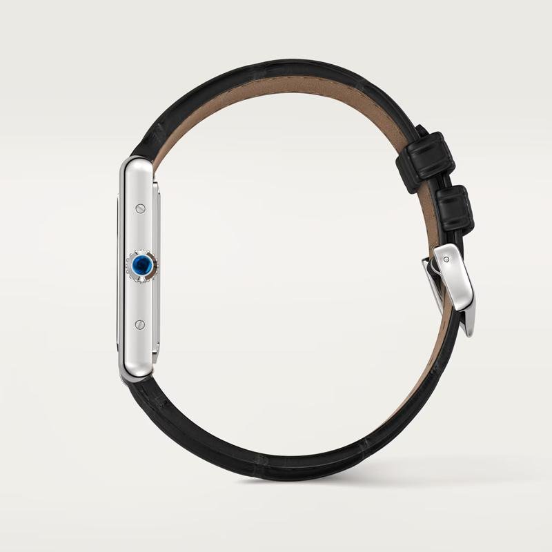 The sapphire crystal glass enhances the watch’s scratch resistance, maintaining its pristine condition even with daily wear. The 33.7 mm x 25.5 mm size is perfectly suited for women’s wrists, offering elegance without feeling bulky. The crocodile leather strap adds a luxurious touch while providing exceptional comfort.