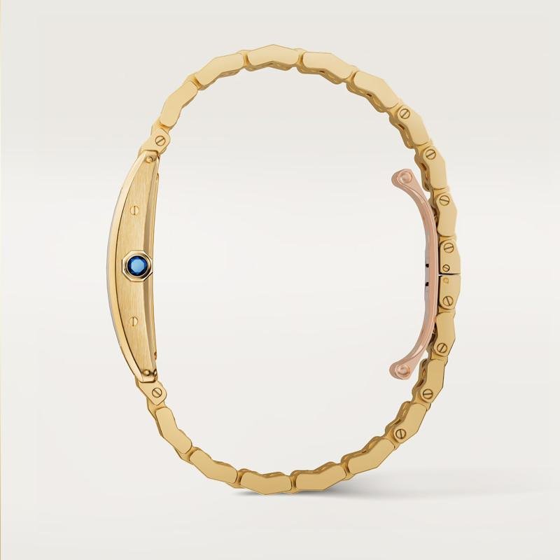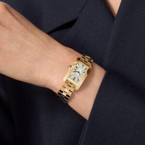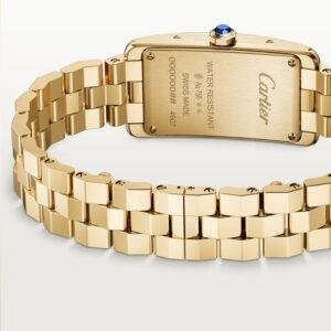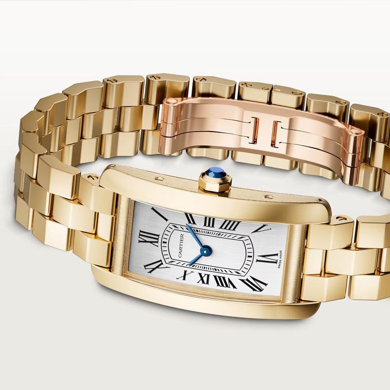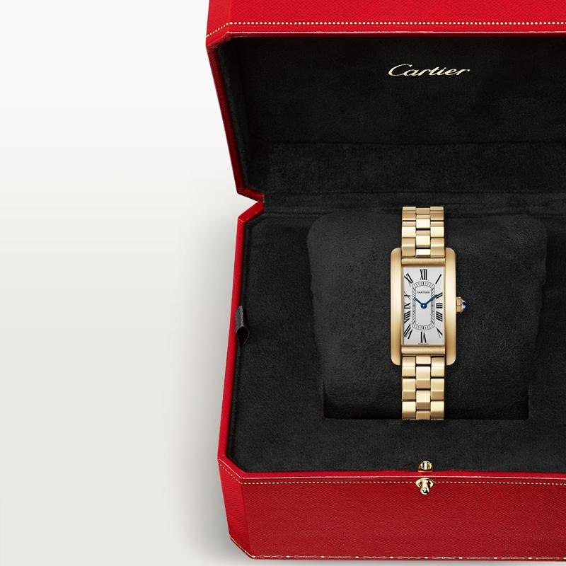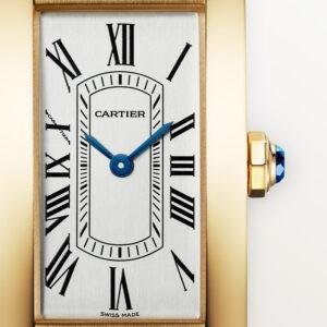 The Cartier Tank Américaine WGTA0406 replica watch features a gold case and silver dial, offering a timeless and elegant design. With dimensions of 35.4 mm x 19.4 mm, this watch is perfectly suited for smaller wrists, showcasing a refined look. Powered by a Swiss quartz movement, it ensures precise timekeeping and excellent shock resistance, making it ideal for daily wear.