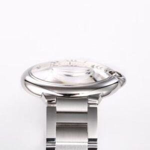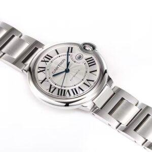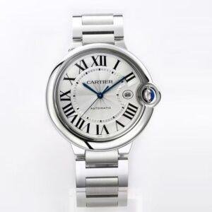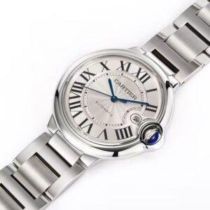 This top-of-the-line 1:1 replica Cartier Ballon Bleu watch (model WSBB0049) interprets the classic masculine style with a 42mm large case diameter. Both the case and the bracelet are made of 316 stainless steel with high-precision CNC engraving, featuring fine and smooth craftsmanship and flowing lines. Equipped with top-quality sapphire crystal, it is paired with the iconic silver guilloon-patterned dial and Roman numeral hour markers, showcasing the original charm in every detail.