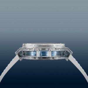 This top-of-the-line 1:1 replica Hublot Big Bang Unico Winter watch (model 441.JX.429B.VR) has a diameter of 42 millimeters. The transparent shell is made of acrylic organic glass (sapphire crystal synthetic material) that is exactly the same as the original version. It not only has extremely high hardness but also features outstanding corrosion resistance and wear resistance.