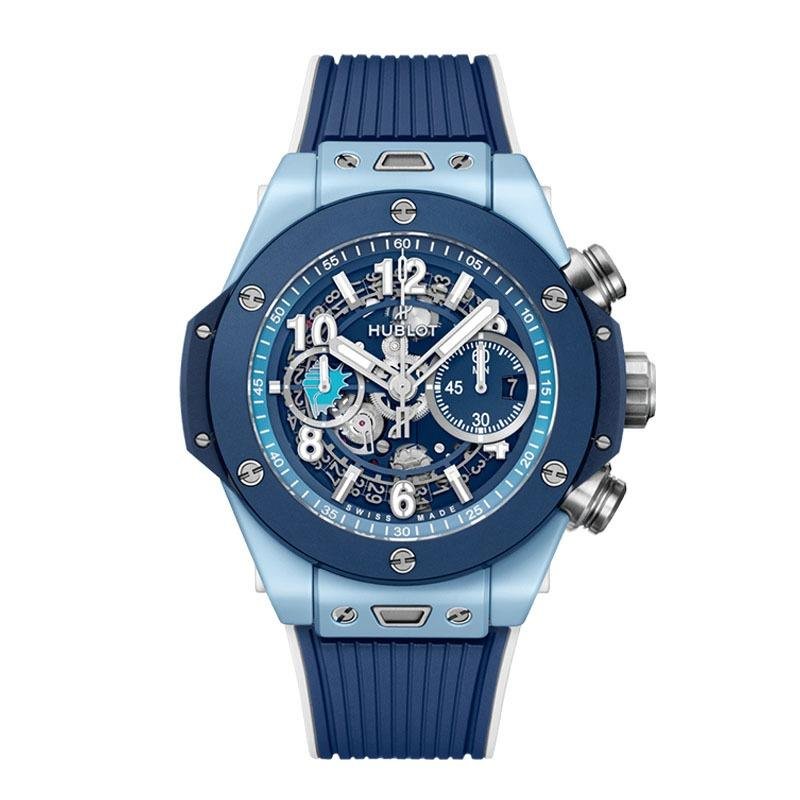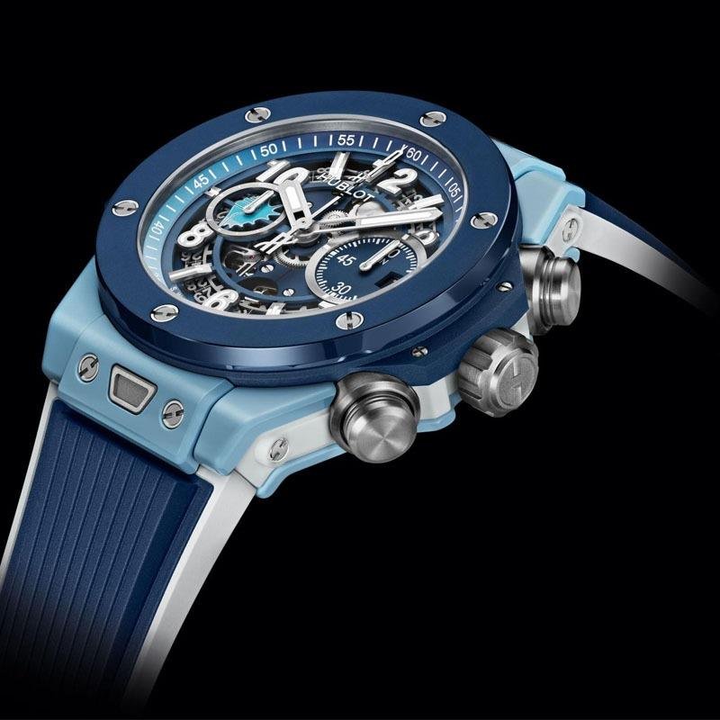This top-of-the-line 1:1 replica Hublot Big Bang Unico Blue Ceramic Caribbean 421.EX.5129.RX.HBC25 has a 44mm diameter. The case is precisely forged from 316L stainless steel and undergoes meticulous polishing and brushing treatment. The texture is tough and exquisite.