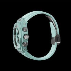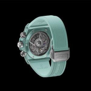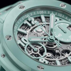 From the unique color of the mint green ceramic to the precise reproduction of each functional module of the movement, all details have been perfectly cloned 100%. Paired with a comfortable and durable rubber strap, this top-notch replica that combines cutting-edge materials, flyback chronograph and skeletonized aesthetics is the ultimate choice for players who pursue outstanding craftsmanship and individual expression. We offer global express delivery, allowing you to own this masterpiece that symbolizes Hublot’s innovative spirit right away.