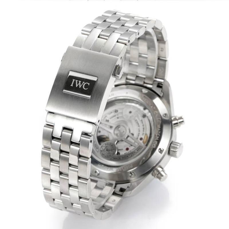 This top-of-the-line 1:1 clone IWC Pilot’s Chronograph (model IW378004) perfectly replicates the classic cockpit instrument panel style with a 43mm diameter. The case is made of stainless steel and is paired with a steel strap of the same material.